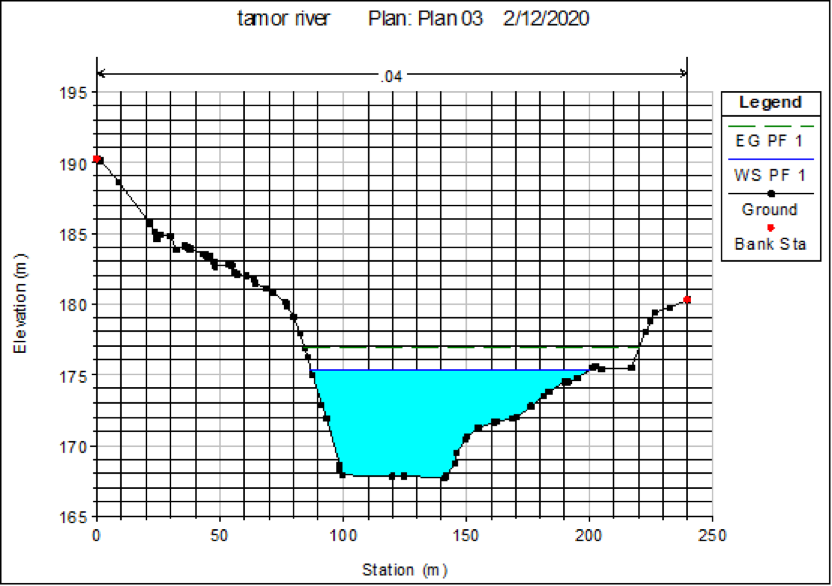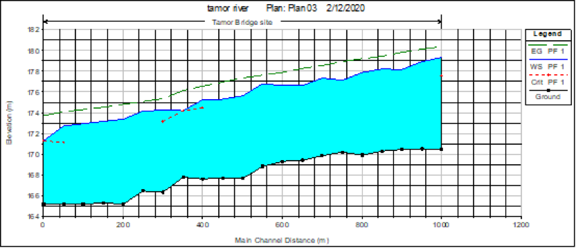 Figure: Cross Section at bridge axis as simulated by HEC-RAS for 100 years flood